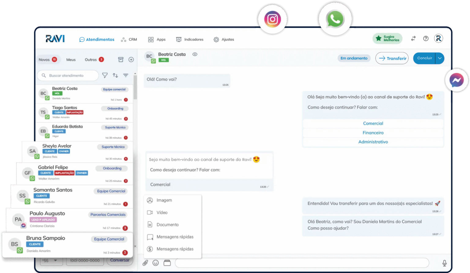 Concentre todas as conversas de WhatsApp, Direct e Messenger em uma única plataforma e crie a sua Central de Atendimento