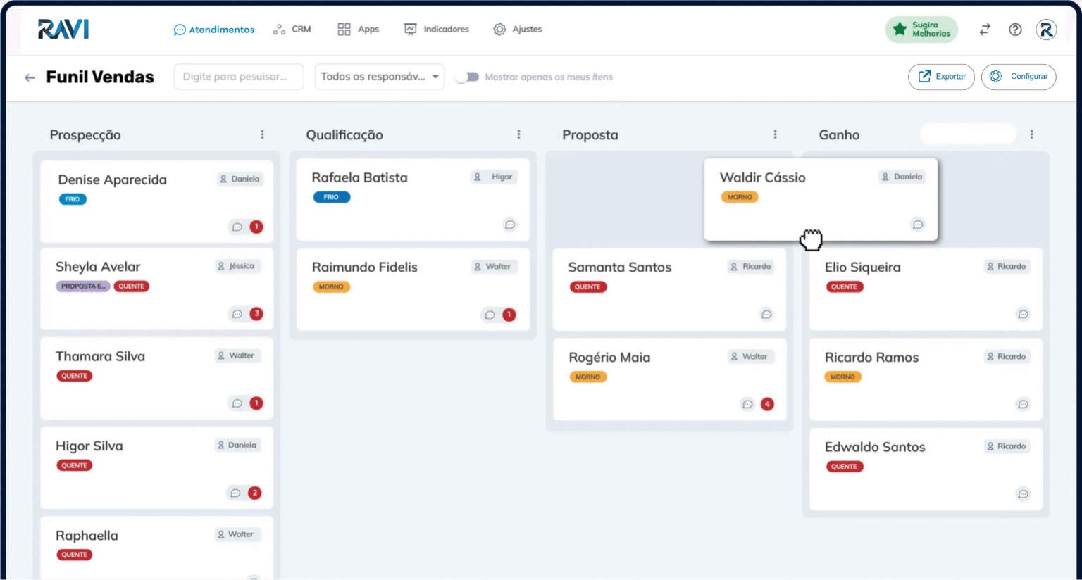 Gestão de conversas e canais de atendimento com visão de funil em uma única plataforma? Agora é possível com o Ravi.